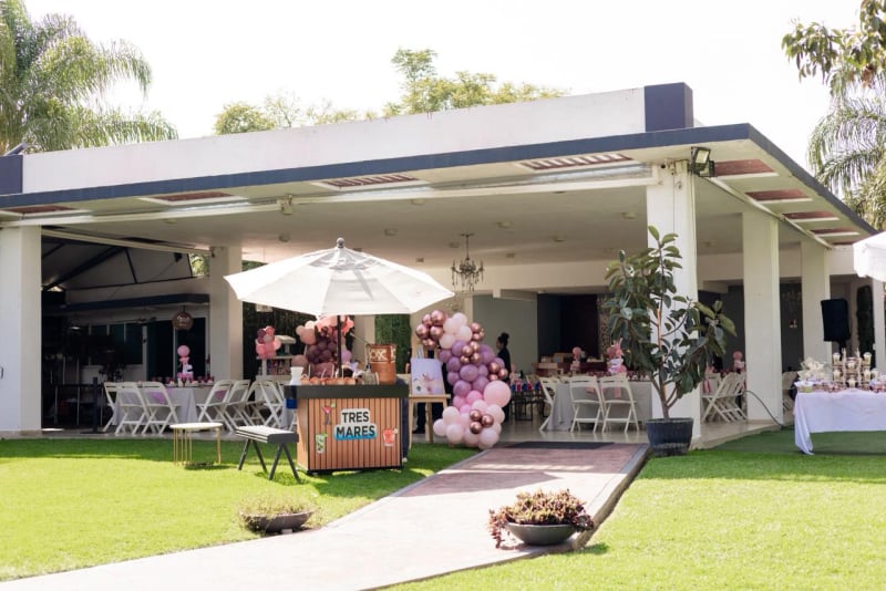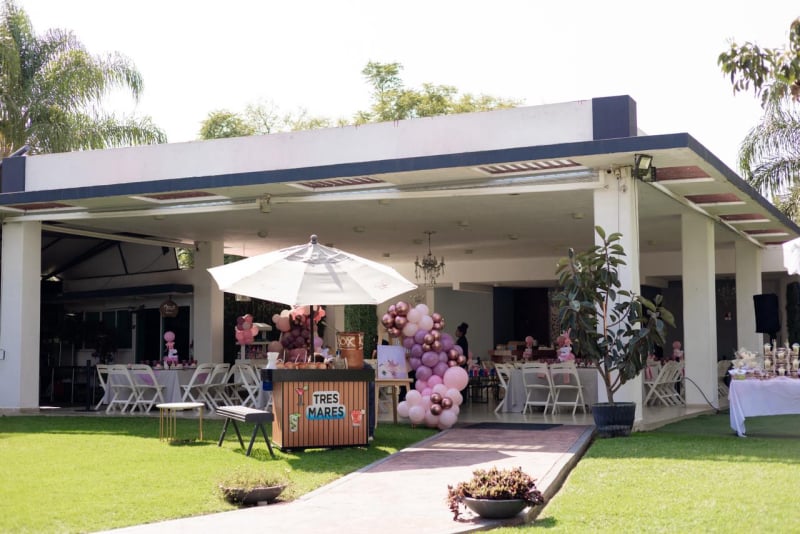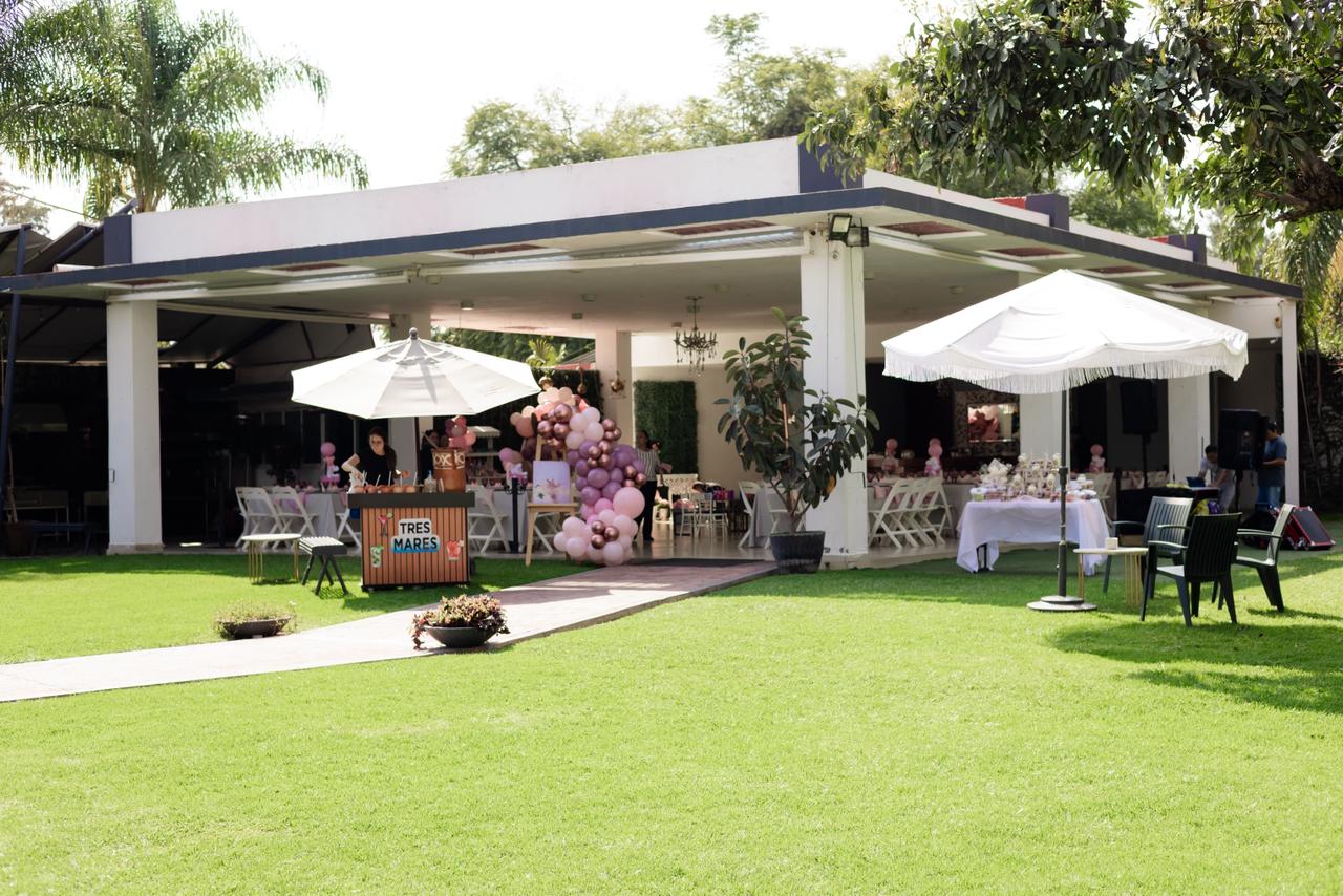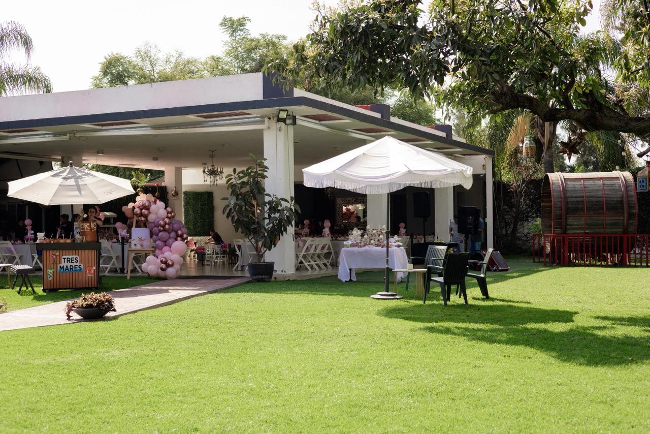 Somos una terraza familiar en el área de Santa Anita, contamos con una hermosa área de jardín, ambientado con taburetes lounch y bancas a la sombra de los arboles, un tombling a nivel del jardín, un juego de barril giratorio y un brincolin, perfectos para los niños. Agradable área techada con imperiales mesas cuadradas perfectas para los adultos con sillas italianas blancas y para los niños sillas tiffany y percheros por mesa para su comodidad.