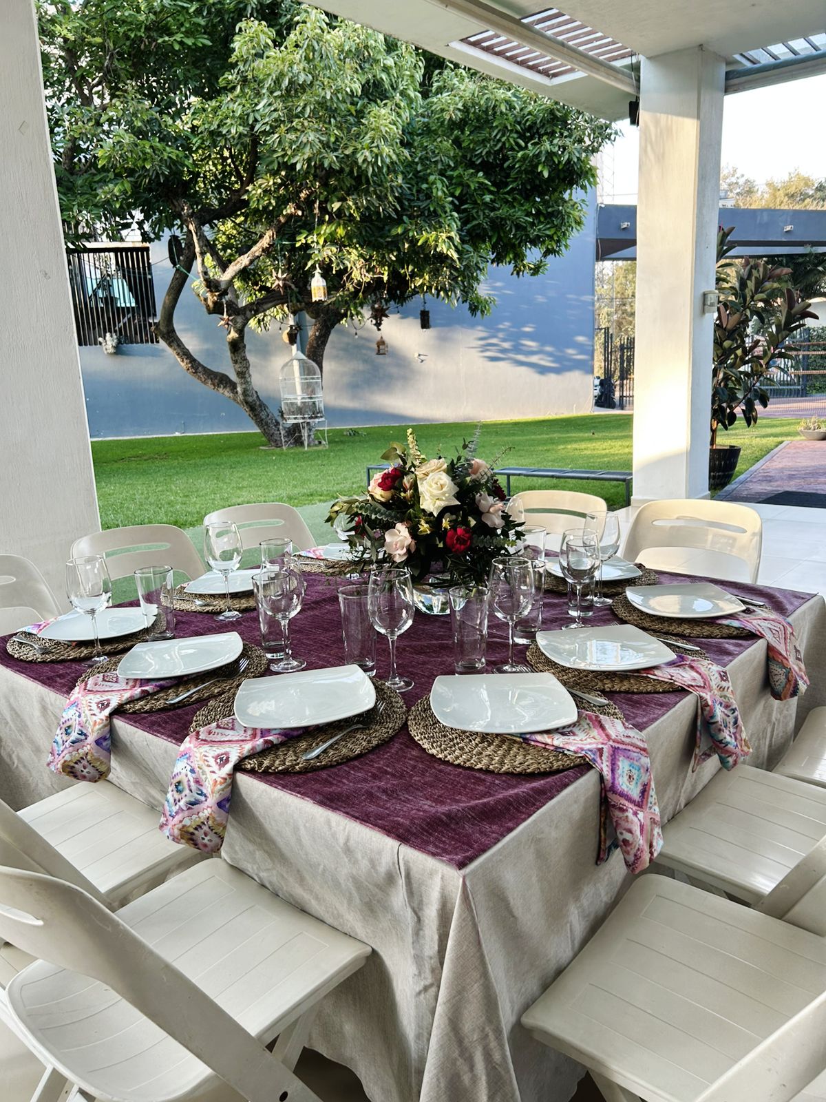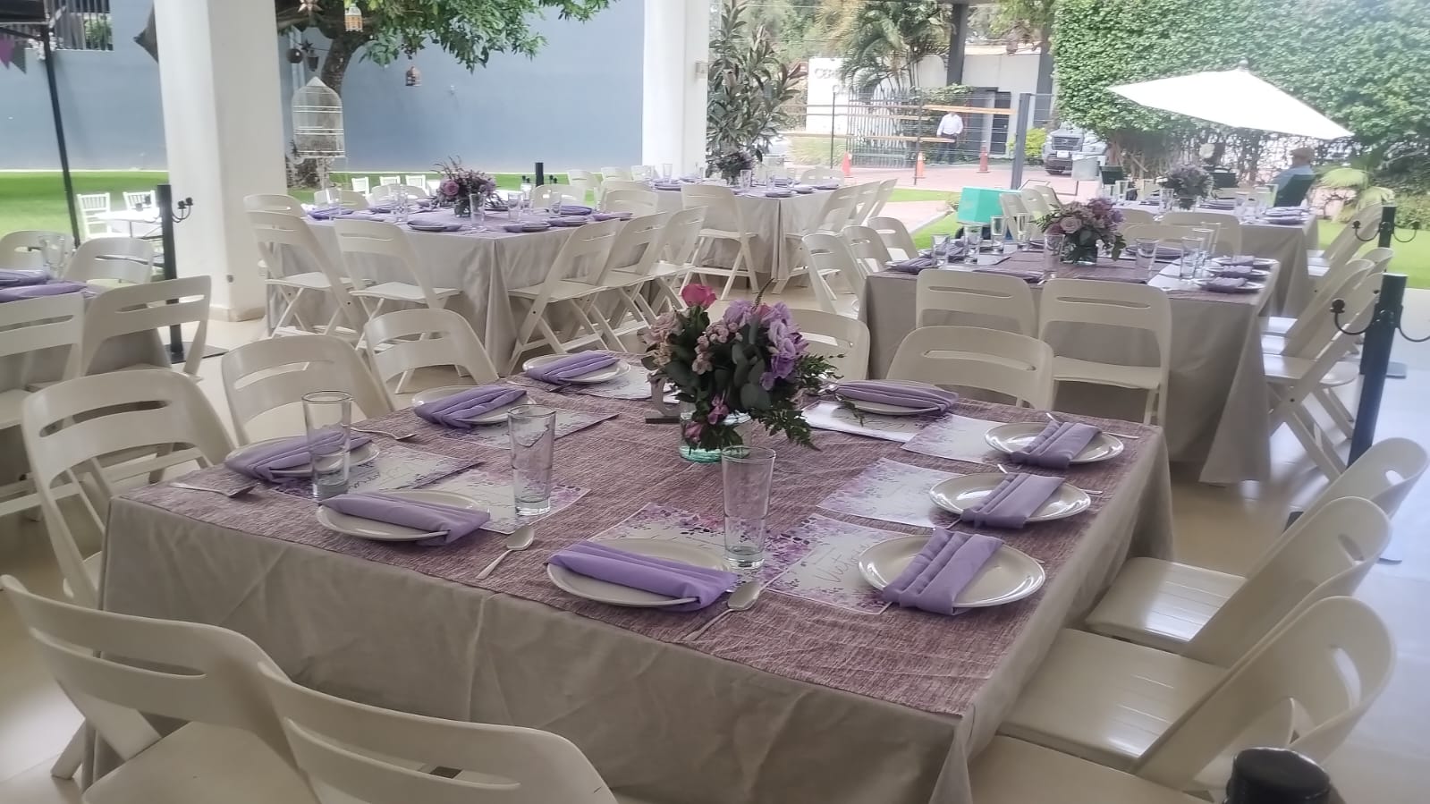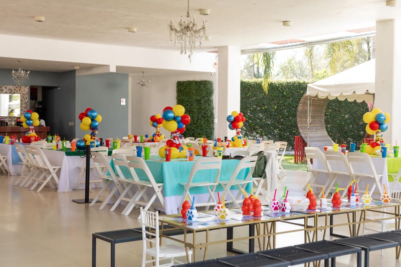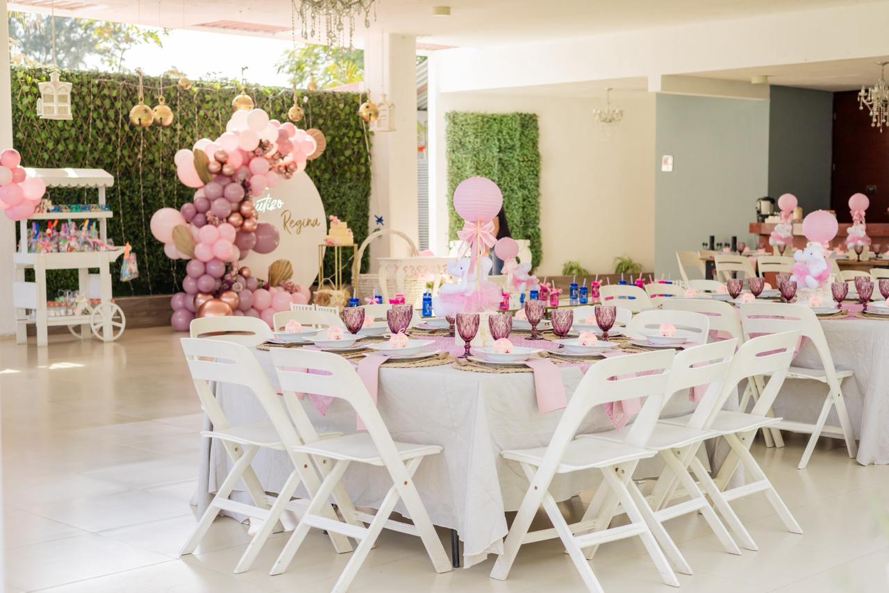 Somos una terraza familiar en el área de Santa Anita, contamos con una hermosa área de jardín, ambientado con taburetes lounch y bancas a la sombra de los arboles, un tombling a nivel del jardín, un juego de barril giratorio y un brincolin, perfectos para los niños. Agradable área techada con imperiales mesas cuadradas perfectas para los adultos con sillas italianas blancas y para los niños sillas tiffany y percheros por mesa para su comodidad.