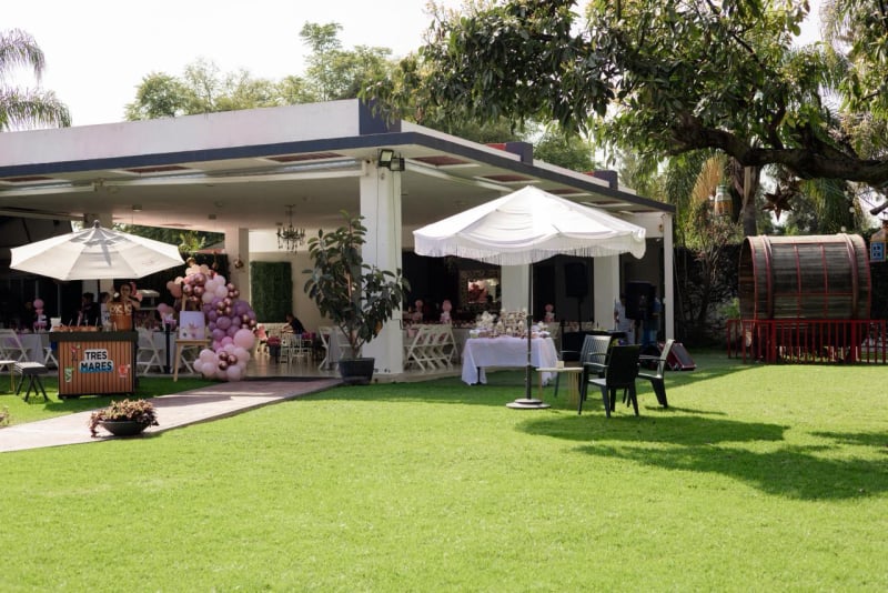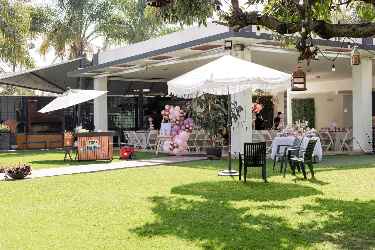 También contamos con un espacio a la sombra de un toldo árabe equipado con un horno de pizza y un asador para que puedas ofrecer el mejor banquete a tus invitados. Por el estacionamiento no te preocupes, contamos el espacio suficiente en dos áreas, y servicio de valet parking para que tus invitados disfruten al máximo tu evento.
